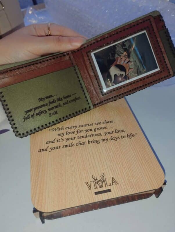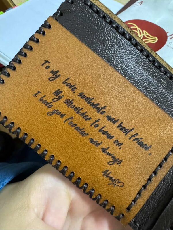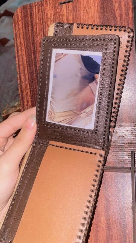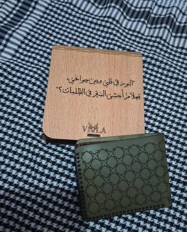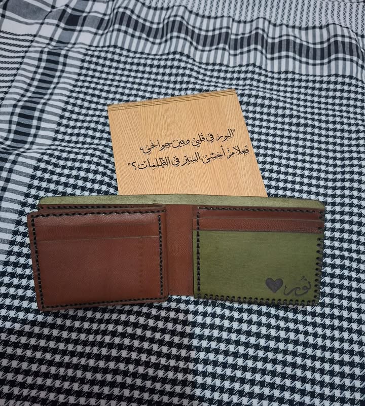 الماتريال بتاع الجلد والتقفيل بتاع المحفظة والباكدج والخط وكله كله حقيقي مبسوطة اوي، شكرا ليكم 🤍